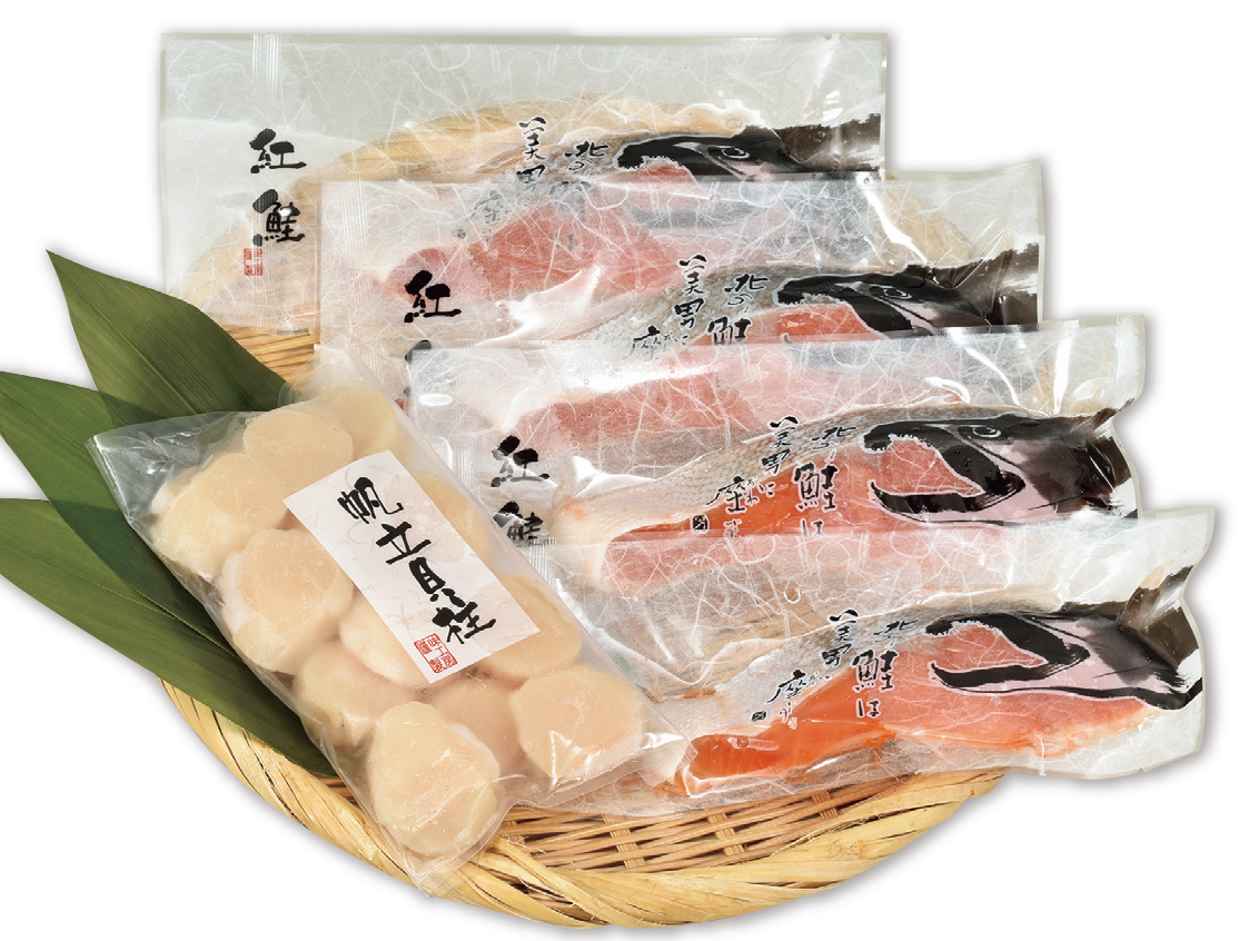 紅鮭(ロシア又はアメリカ産)/70g×4、ほたて貝柱(北海道産)/200g