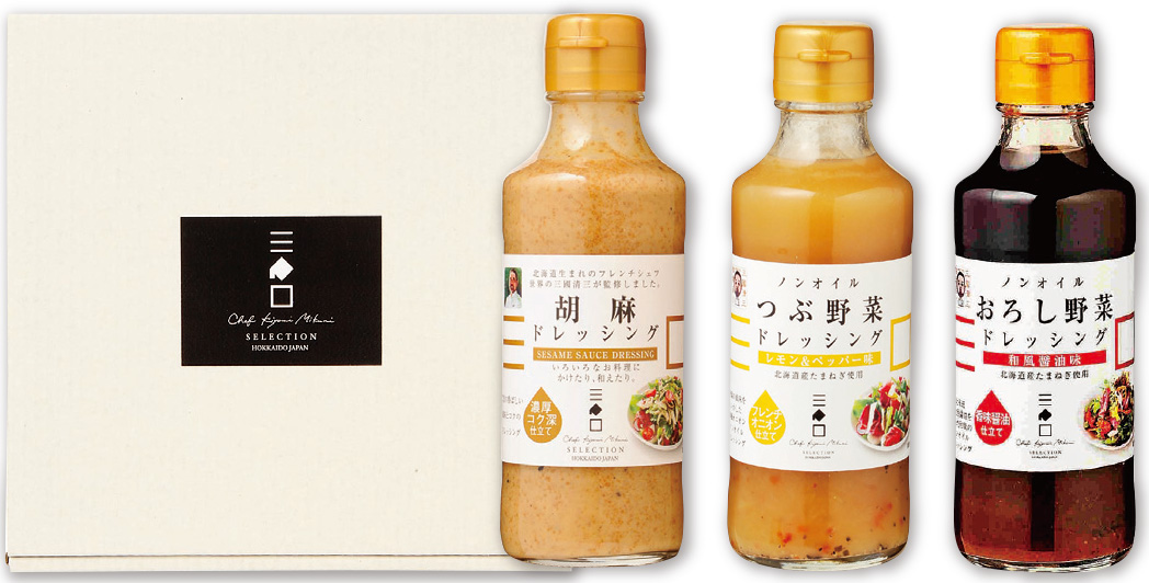 北海道出身のフレンチの巨匠・三國清三シェフ監修・推奨したドレッシング3種のセットです。