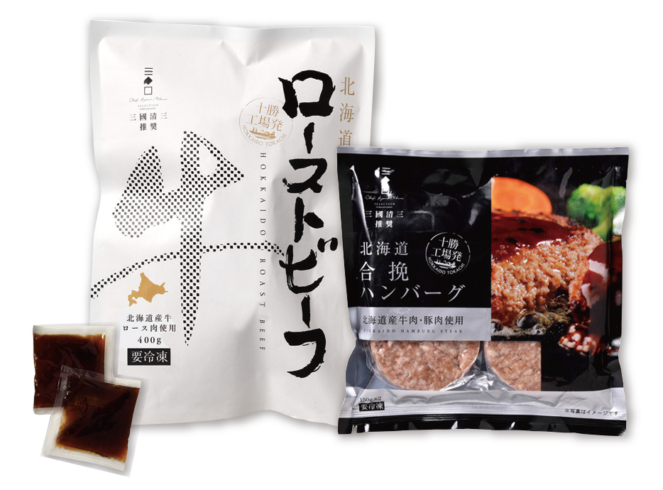 三國推奨北海道産牛ローストビーフ/400g、ローストビーフのタレ/2袋、三國推奨北海道合挽ハンバーグ/2個入(300g)×1